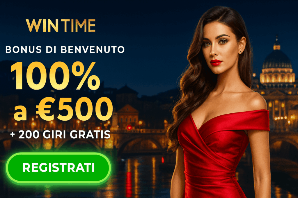 Il cuore dell’offerta promozionale di Wintime Casino, almeno come appare dalla grafica principale, è il bonus di benvenuto 100% fino a 500 € + 200 giri gratis. Questa combinazione, tipica dei casinò online italiani, serve sia a dare più benzina al primo deposito sia a far provare subito le slot.